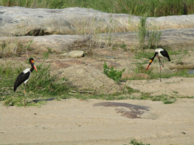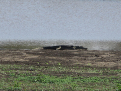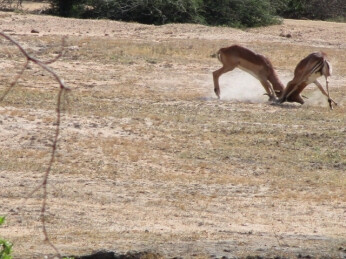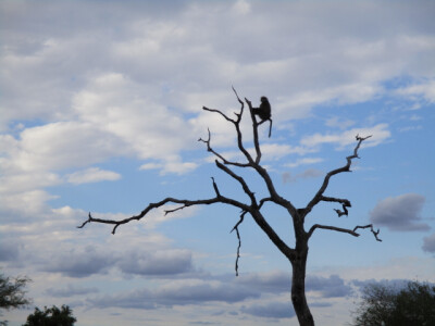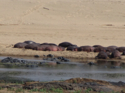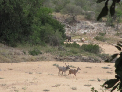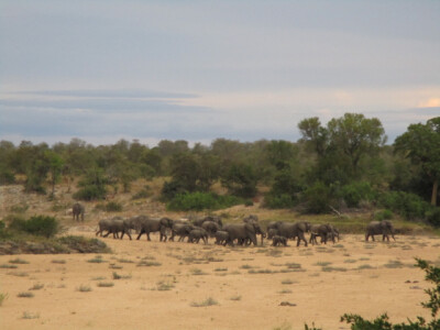 Elephants on parade in the dry riverbed...the very first view we had from our tent!